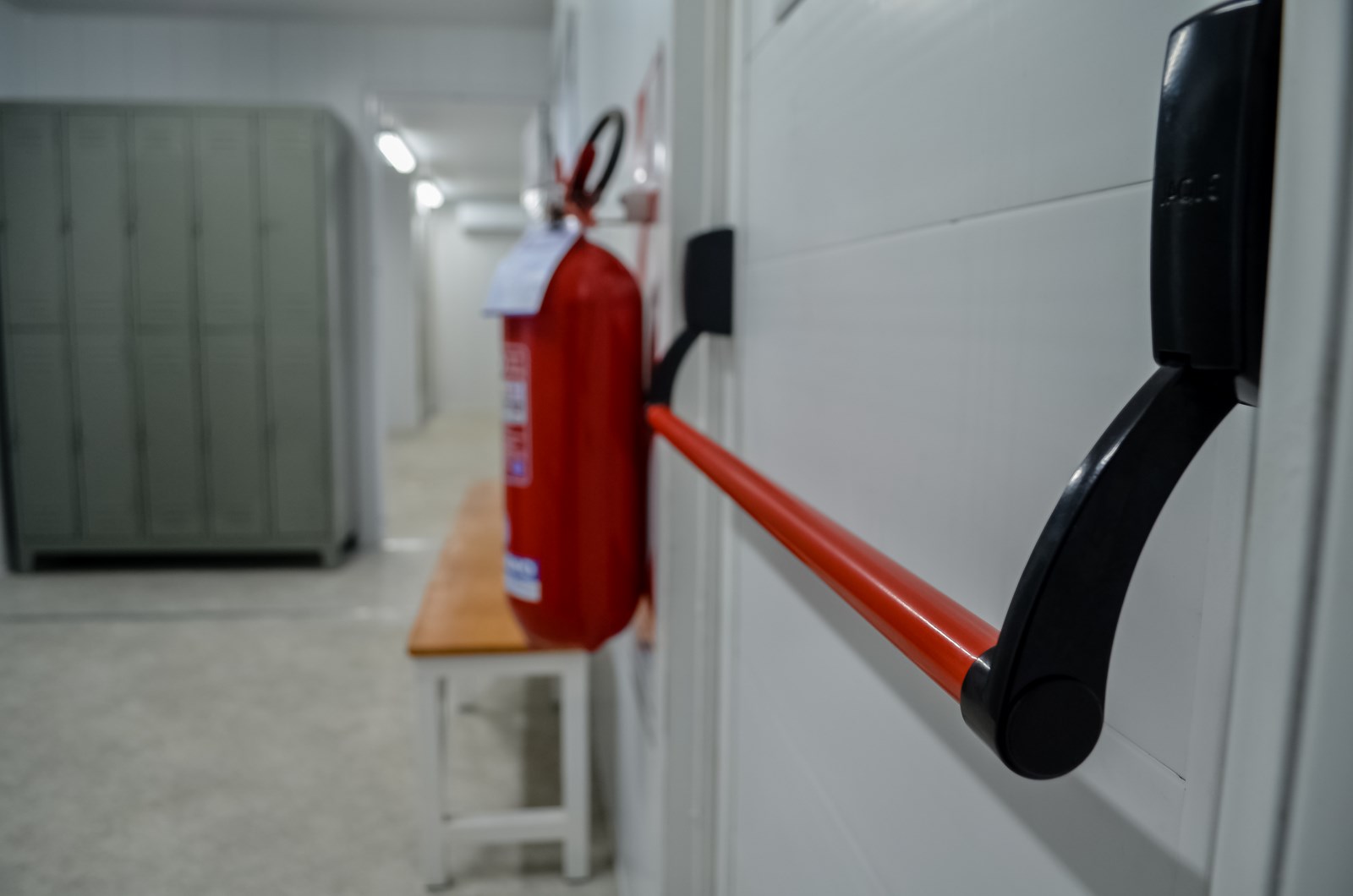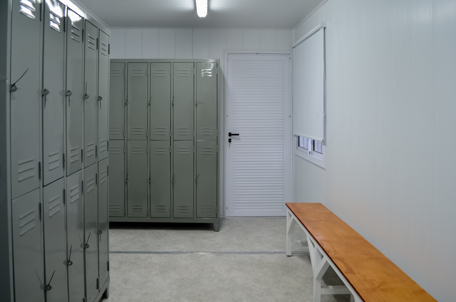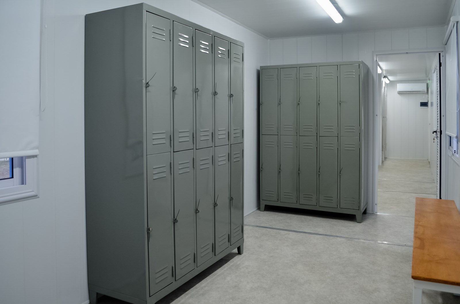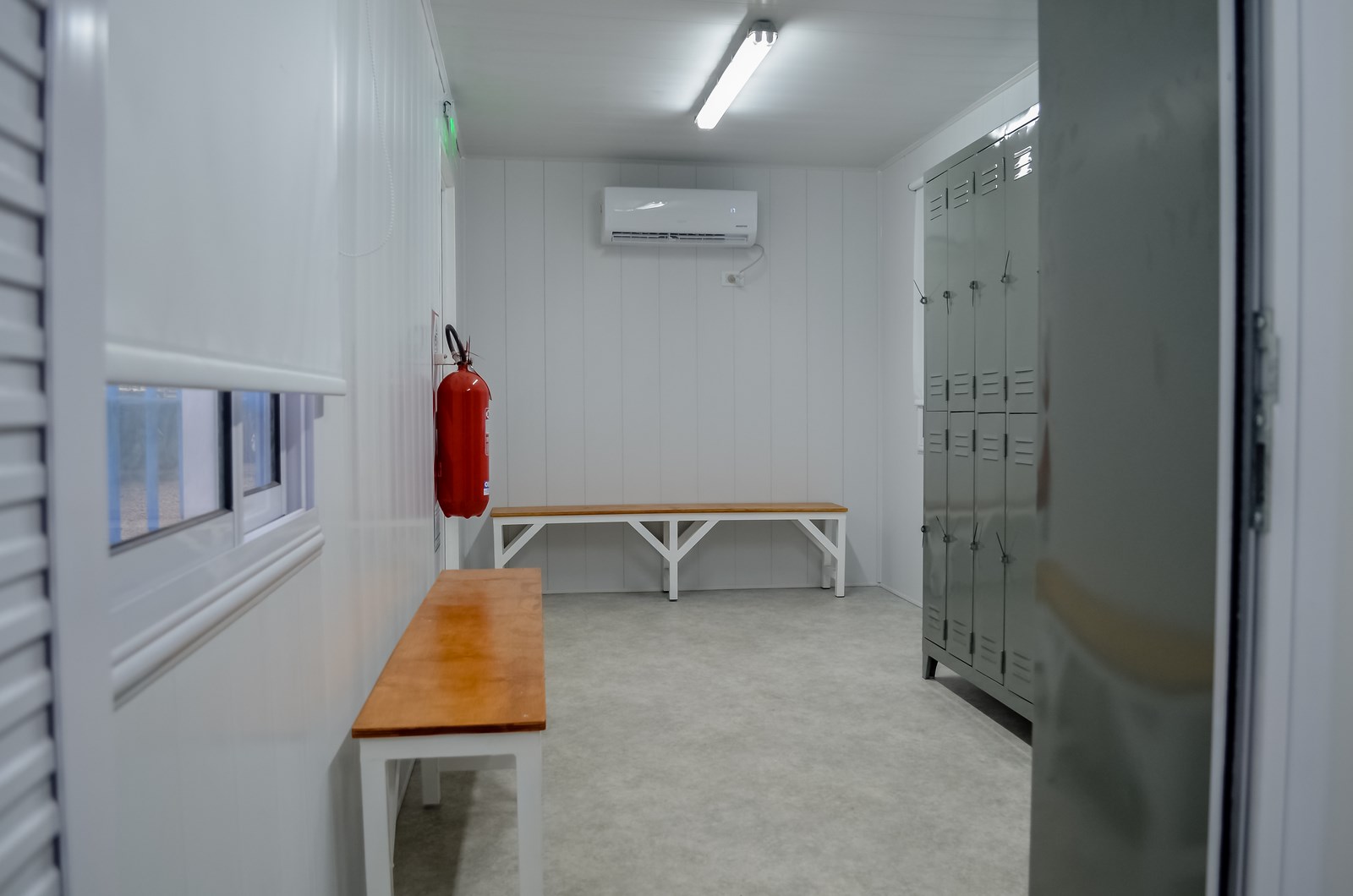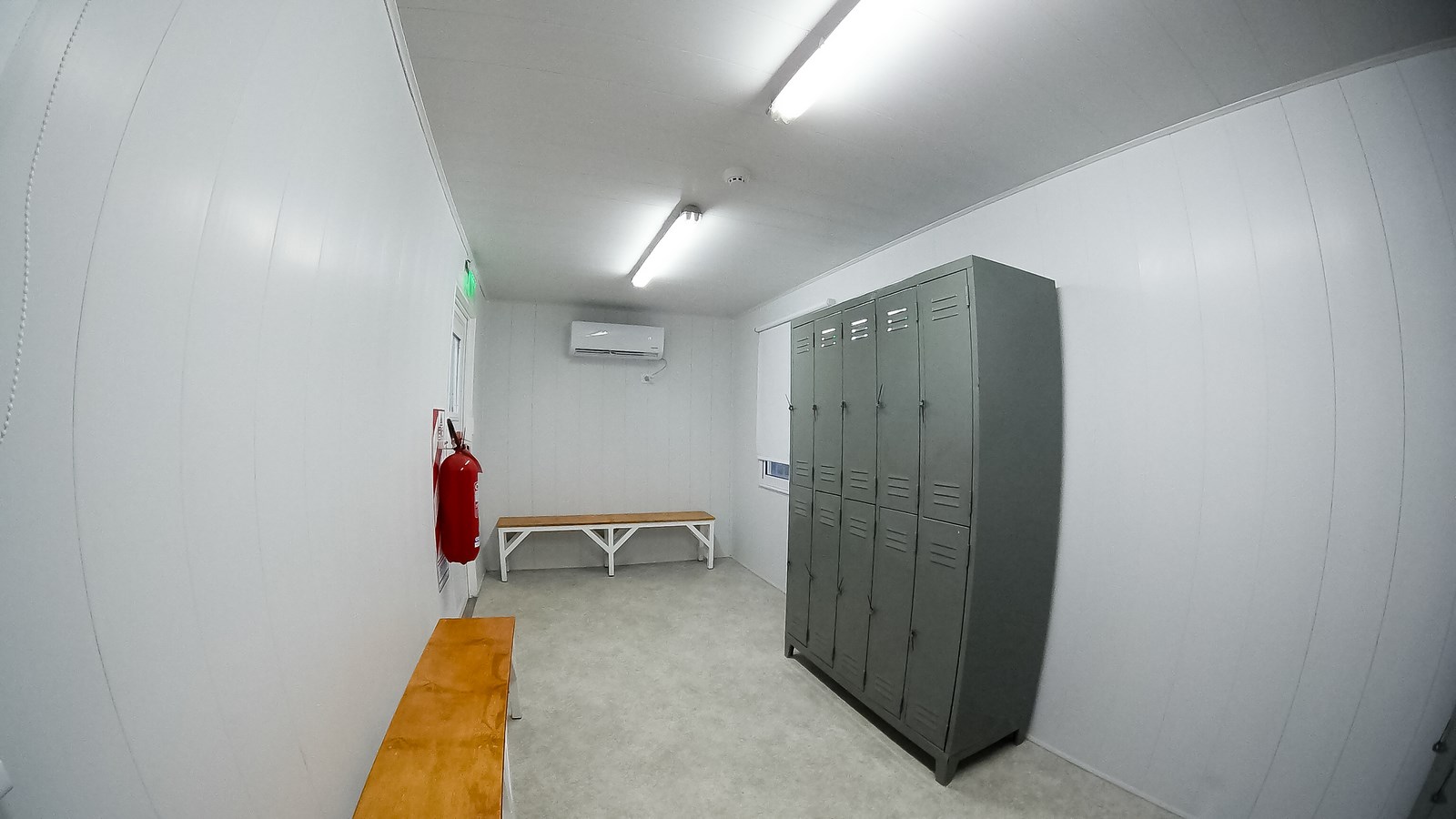 Las unidades habitacionales cuentan con un sector de vestuario con mobiliario totalmente incorporado, como bakers metálicos, bancas estructurales construidas con material de alta resistencia, cortinas roller blackout, y elementos de seguridad. En un segundo sector se desarrolló un espacio para boxes de duchas y elementos sanitarios.
