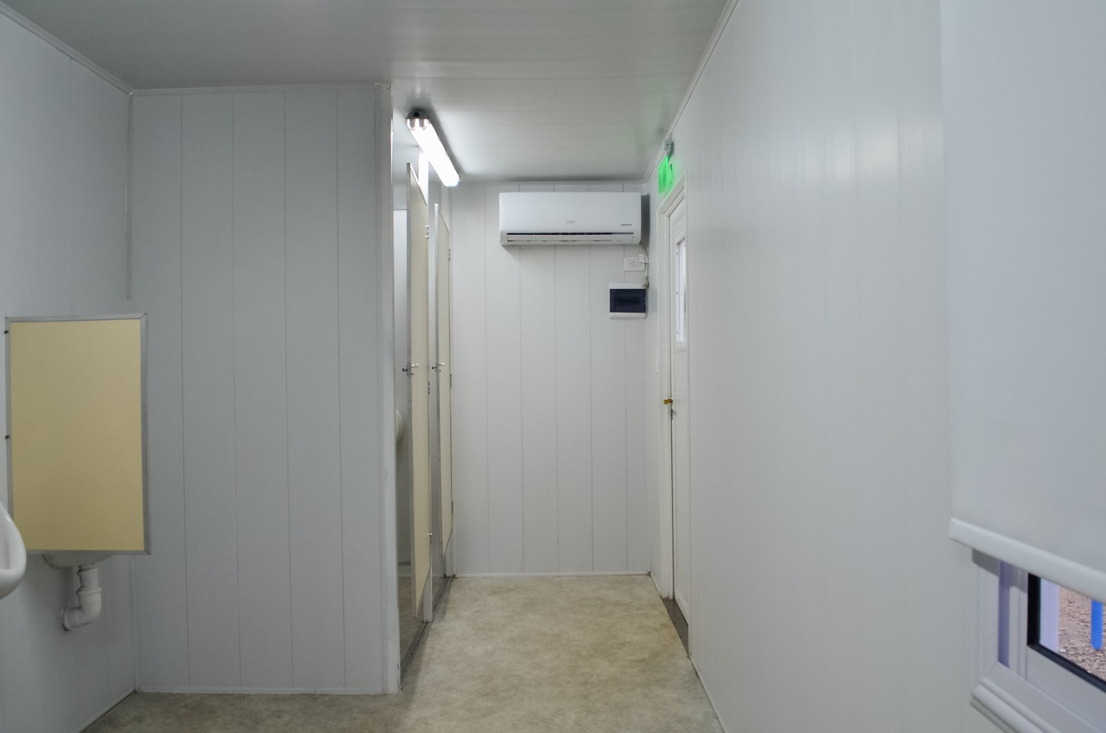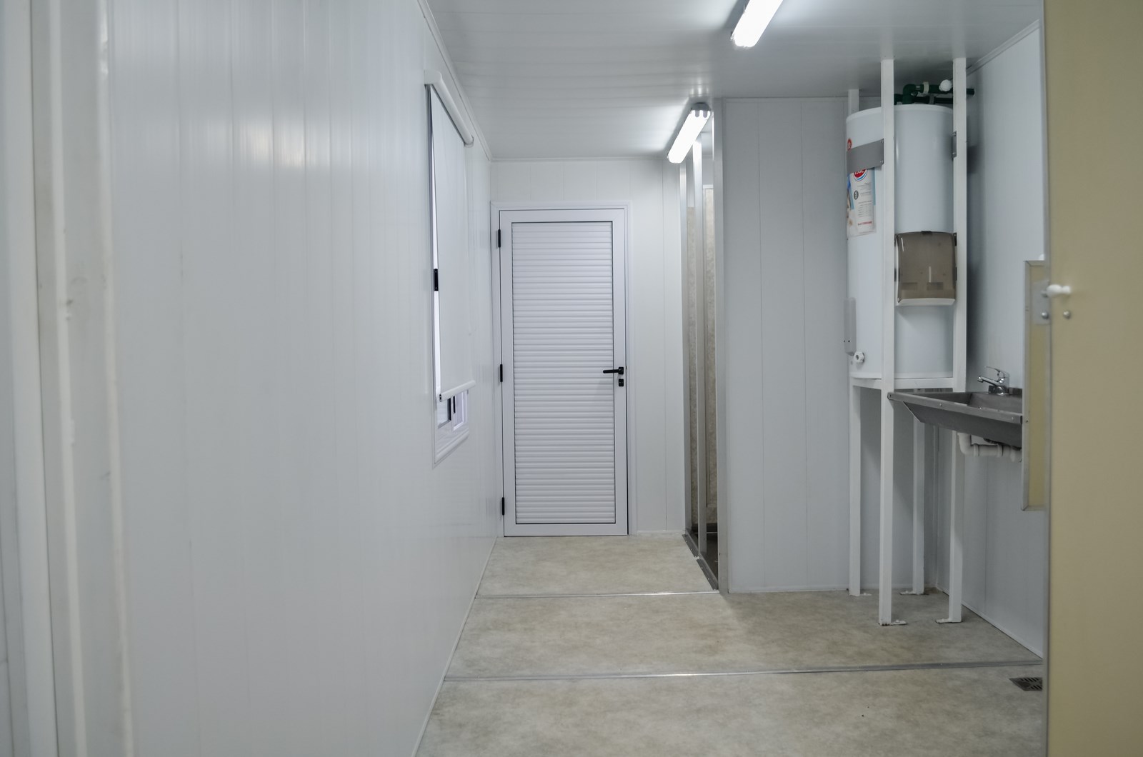 Garantizando la calidad de nuestros productos, los módulos son provistos con aislante y revestimiento interior en paredes y techos de primera calidad, instalación eléctrica, instalación de agua fría y caliente, instalaciones sanitarias, climatización, aberturas de chapa, madera y perfilaría de aluminio. En la superficie se utiliza piso vinílico de alto tránsito.