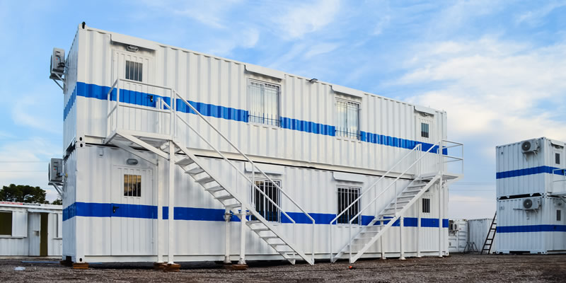 Proporcionamos containers petroleros apilables (containers dos pisos) conformados para el uso de vestuarios, baños y duchas.